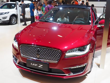 全新家族式前臉 林肯MKZ車展實拍圖賞!林肯MKZ迎來了中期改款車型,新車最大的亮點在于采用了全新的家族式前臉設(shè)計,新款網(wǎng)狀格柵更有質(zhì)感。新車前大燈采用全LED光源,整體造型簡潔,前臉多處采用了多處鍍鉻處理,更顯豪華。 -